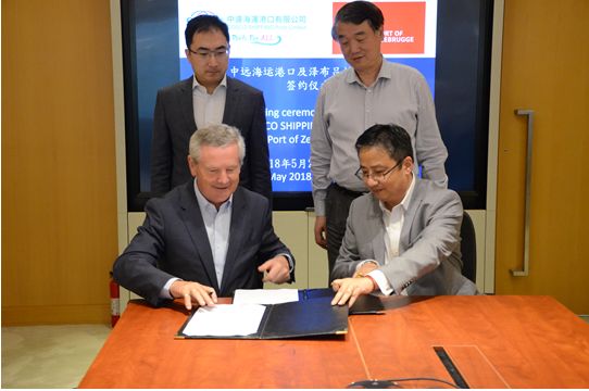 5月25日下午,中遠海運港口(COSCO SHIPPING Ports,簡稱“CSP”)宣布比利時澤布呂赫港務局戰(zhàn)略投資中遠海運港口澤布呂赫碼頭(CSP Zeebrugge Terminal)百分之五股權。中遠海運港口通過附屬公司與澤布呂赫港務局簽署買賣協(xié)議。